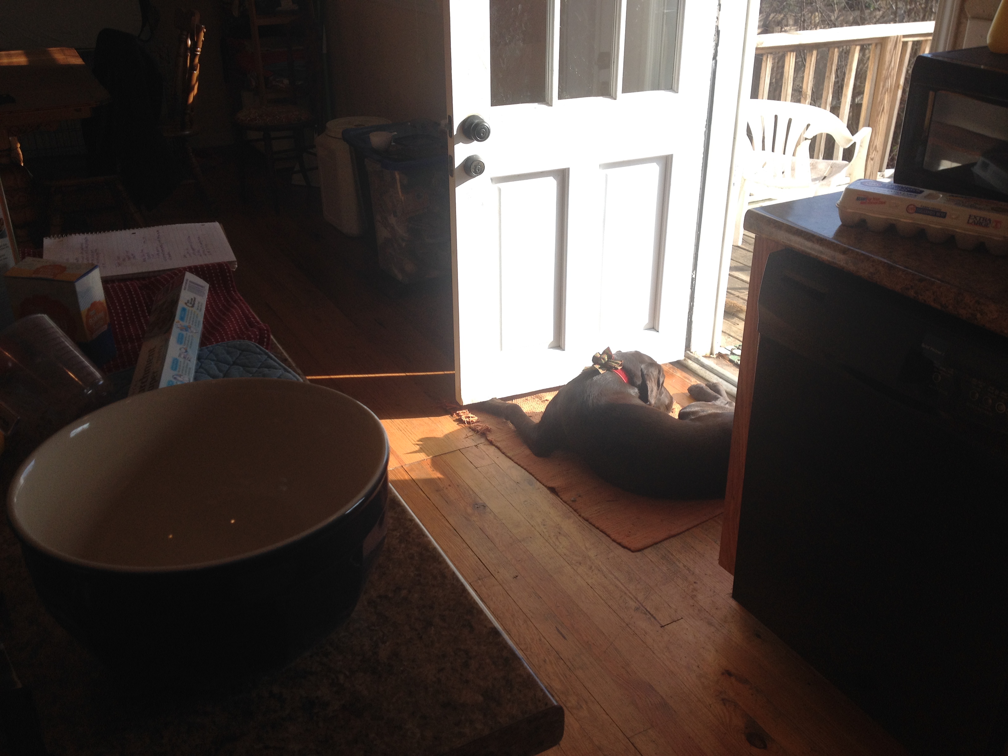 After a big afternoon walk, Millie was content to sunbathe outside of the kitchen while I cooked. Her counter surfing days are over and she’s growing up to be a great dog. She loves to be right with her people but is learning she can settle nearby and still be happy.