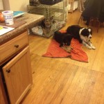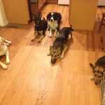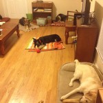 Zeus has been learning to WAIT outside of the kitchen and other off limits rooms. He doesn’t necessarily have to sit, just as long as he doesn’t pass over the boundary. He made the wonderful choice of settling on a towel, both while I cooked and while I ate! Then he joined all the big dogs to show off DOWN for dinner. Everyone did a great job and settled with a bone in the living room, while I kick my feet back and relax. It’s good to be in charge!