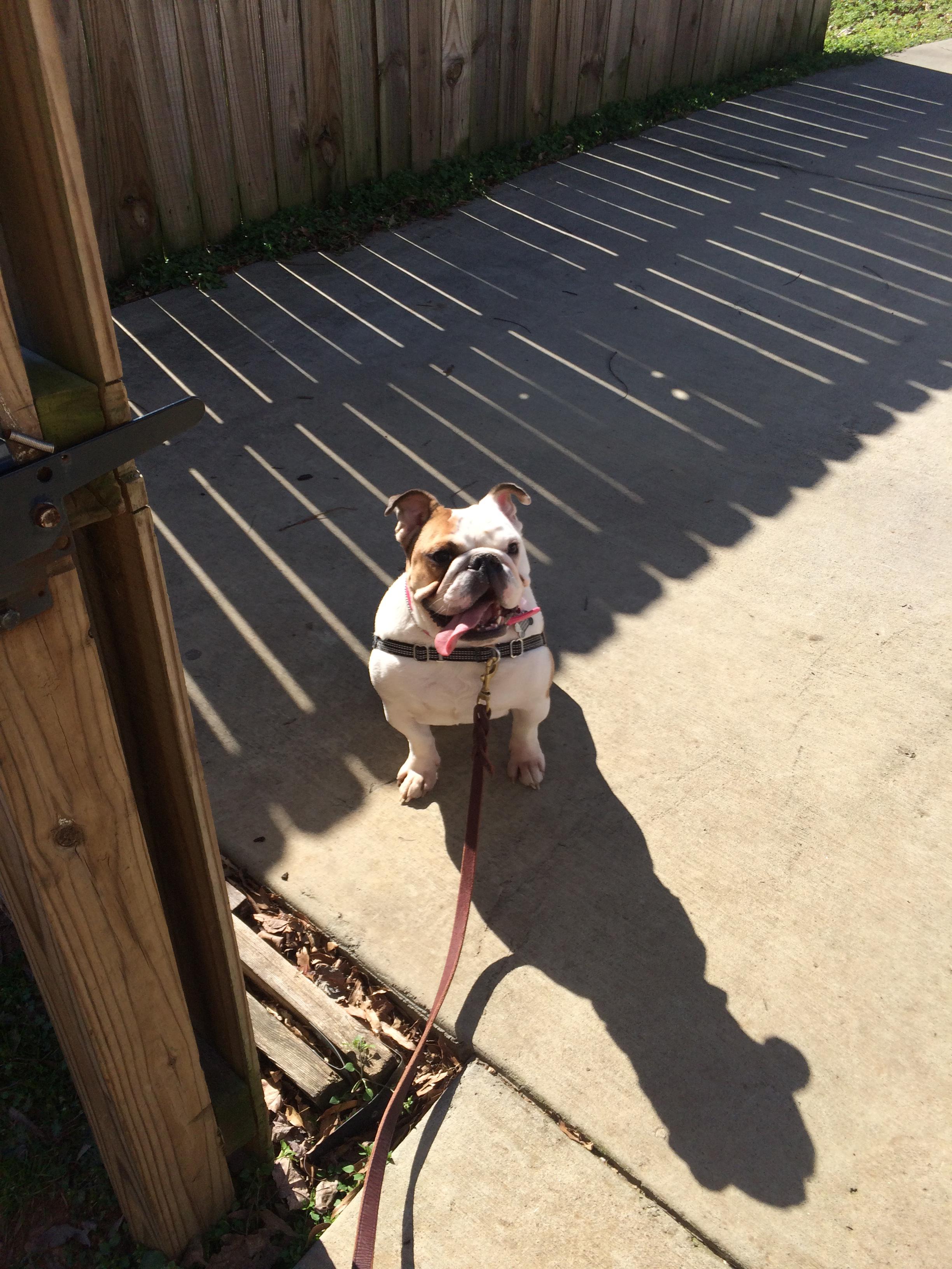 Rule #1 at camp is sit at the door. Instead of plowing by me, Sadie has to hold a sit and wait to be invited in. If she gets up from the sit 100 times, I’m patiently waiting 101 times to put her back. We do this at the gate, at her crate, in the car, or any doorway in the house. It’s a simple exercise that accomplishes several things. It shows her that people are in control of ALL space, whether coming or going. It increases Sadie’s self control to hold her sit until released, and prevents dashing out the door. It also makes her take the time to look at me, changing her attitude from “COMING THROUGH!” to a calmer “may I come in?” Good job Sadie, you worked hard on this one!