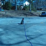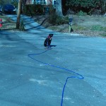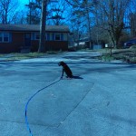 p dir=”ltr”>The next challenge for Enzo is to be brave enough to hold his commands with distance (~20′) between us. I warmed up by doing the exercises that we normally do at 5-6′ apart, I used the long line to add maybe 10′ of distance today. OK, that unnerved him a little but I calmly kept putting him back in his sit until it wasn’t so scary to have me 10′ away. Then we moved into some more drills with the long line and I added up to 20′ of distance after putting him back several times. The good news is that when he got up out of his sit before I called him, he was moving towards me! Also note the picture taken from 20′ BEHIND him! That is the hardest spot for a dog to hold a sit, a dog really has to TRUST that its leader will not leave them. Great job Enzo!