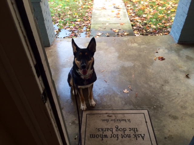 Gretel is back for Continuing Education and as always, sitting at every doorway. If she tries to rush through, she must hold her sit even longer until she’s calm. She is also trying out a Thundershirt to help calm her down a little bit. What a pretty girl!