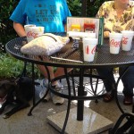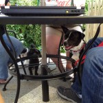 Our team got together for a group outing at our local burger joint, MoJoe’s. Lars and Chloe were on their first big outing and did fantastic! Chandler did great settling around all the new dogs…even the two little guys. Shadow’s confidence in public situations has grown tremendously and he enjoyed the company. Hershey had a good game of fetch before the outing so he was content to crash in the shade and chill. They all did a great job and were model canine citizens!