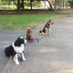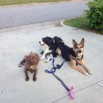 Hershey is great at following through with SIT, DOWN, WAIT, and COME on our walks. Lots of commands back to back tire him out and get his mind focused on me instead of the other dogs or distractions around him. Good boy Hershey!