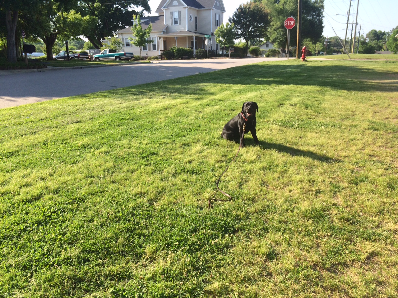 Barley is gaining more and more self control! Now that she is good at sitting until released, we practice it in more places with bigger distractions. All she has to do is sit and wait for my next direction. If she gets up, I walk right back to her and put her back in a sit. What a beautiful day to practice commands on walks!