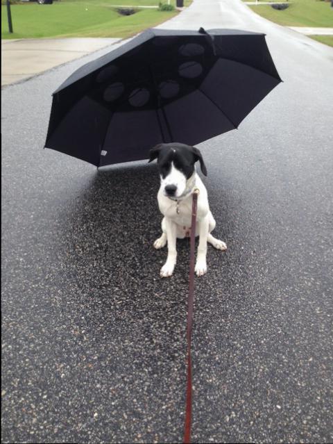 By: k9solutionsPosted on May 1, 2015 Izzy is afraid of umbrellas, so at the expense of my hairdo, we did our morning drills around my umbrella to desensitize her. She learned that big scary thing is not going to hurt her. Being scared of it is not allowed 🙂 Like this:Like Loading... Related