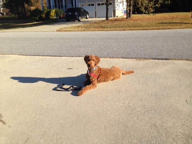 Once you’ve mastered the command, add distance & distractions! For now, Sadie is just learning that even when I drop the leash and walk away, the DOWN command still applies. Eventually I will release her. She has to wait until I take this pretty picture!