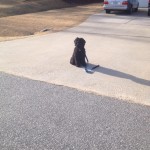 Drew is learning to stay put until I release him. No matter where I go he must stay until I either return to him or call him to me with the COME command. His self-control and focus are improving! Now we are ready to practice around distractions!