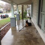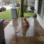 Abby, Leo, and Willie know the show must go on to keep those manners sharp. When it rains too hard, we move to the front porch and do some drill walks. Abby and Leo practice their down-stays while Willie is holding his SIT. We gradually add a little more distance between us to build up to a long distance stay.