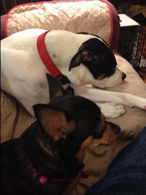 Rosie is starting to see that the world isn’t so scary. Starting small such as introductions with new dogs. This is done by walking together and doing drills. That lowers everyone’s energy and creates a calm atmosphere for greetings. With both Rosie and Jack tired they were invited to relax on the couch.