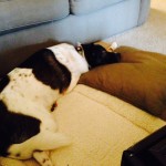Having a designated spot for your dog to settle helps them understand what you want from them and helps keep them for being underfoot. Give them a bone/antler/bully stick to keep them occupies. Here we see Rutabega and Bernie settling nicely in their spots.