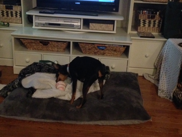 By: k9solutionsPosted on May 24, 2015 Vienna is working on staying on her settle spot. We start out keeping the leash on her so it’s easier to move her back to her spot. Using a tasty stuffed kong or bone keeps her busy. Like this:Like Loading... Related