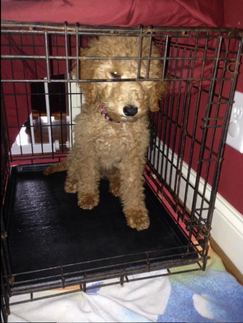 Hazel must be calm and wait for me to release her from the crate. This is a threshold, along with doors around the house and in the car. I even use it at the top & bottom of the stairs and at the back gate. Her reward for being calm is to be released! No more barking!